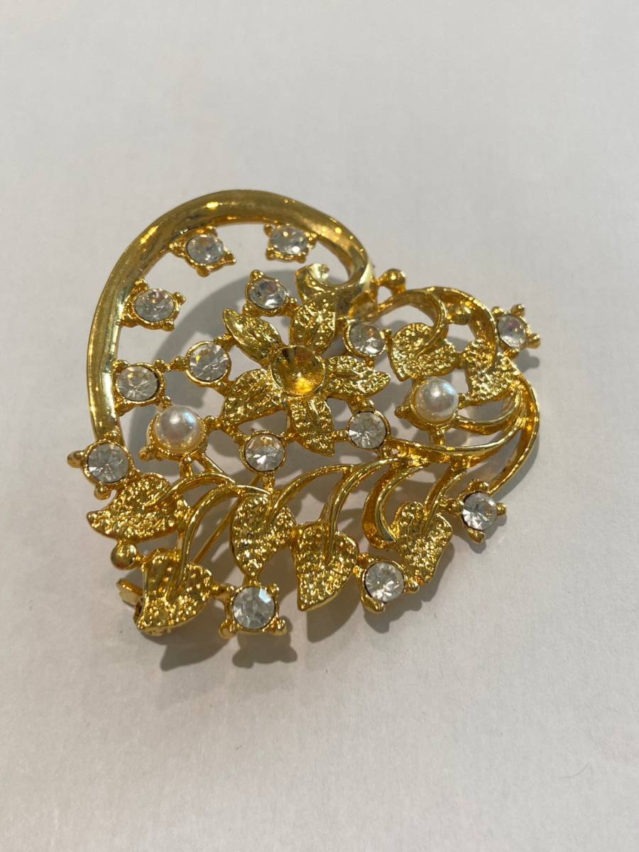 > ★コレクター必見!! ビンテージ 真珠 ハート 花 ブローチ ゴールドカラー レディース アクセサリー 冠婚葬祭 コレクション M040306