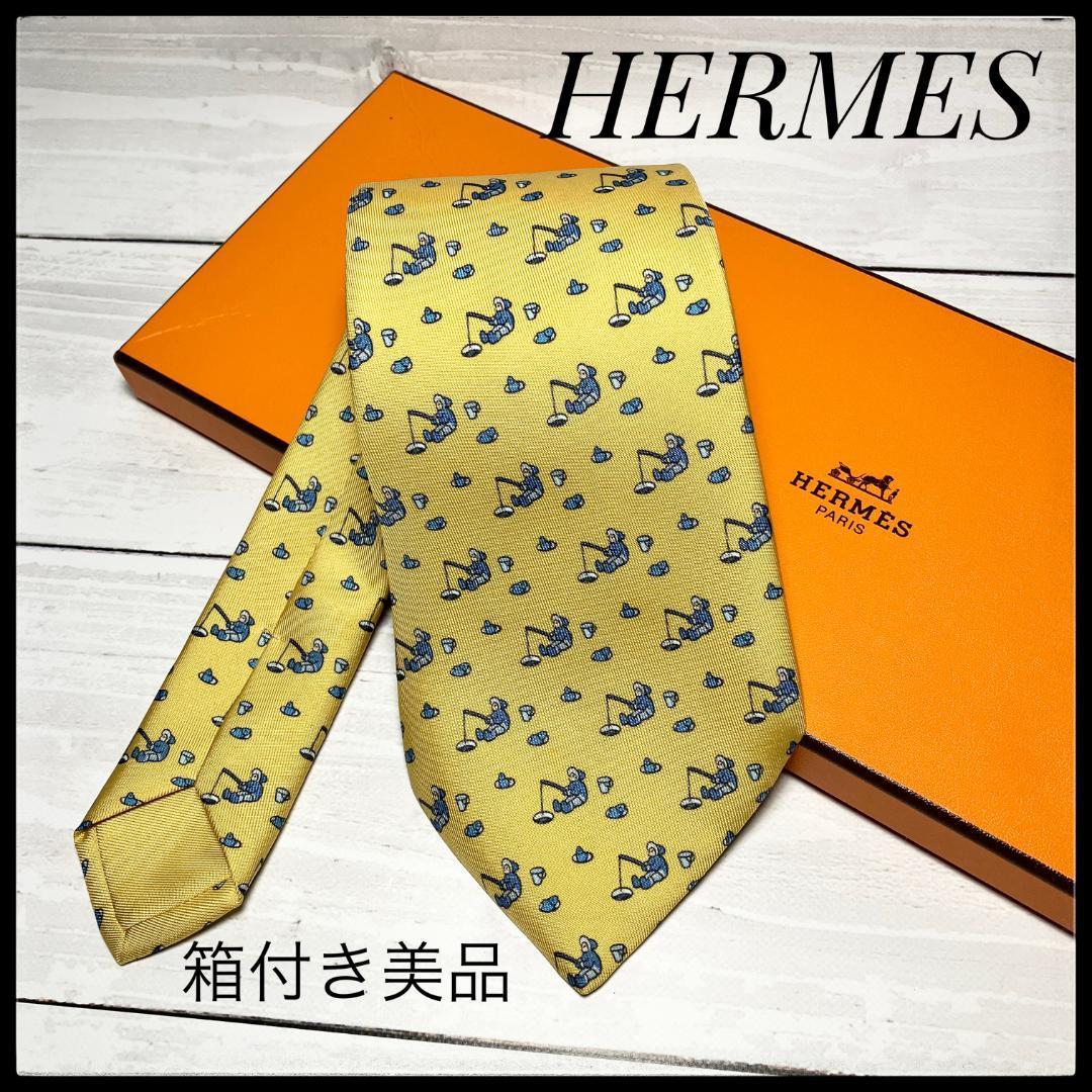 - ★箱付き美品★ HERMES エルメス ネクタイ 釣り人 総柄 シルク 絹 メンズ スーツ シャツ ビジネス パーティー フォーマル 箱 ケース BOX