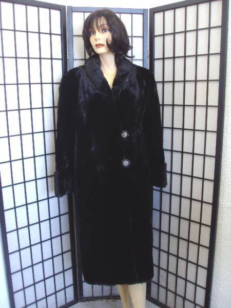 - ブラック シェアード・ラビット毛皮コート サイズ6