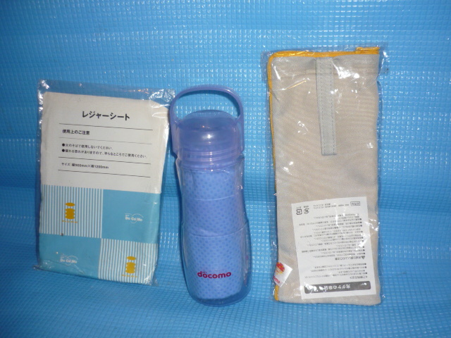 - a★未使用・非売品★NTT docomoドコモ ボトルインクールタオルと光ダケの傘袋とレジャーシートの3点