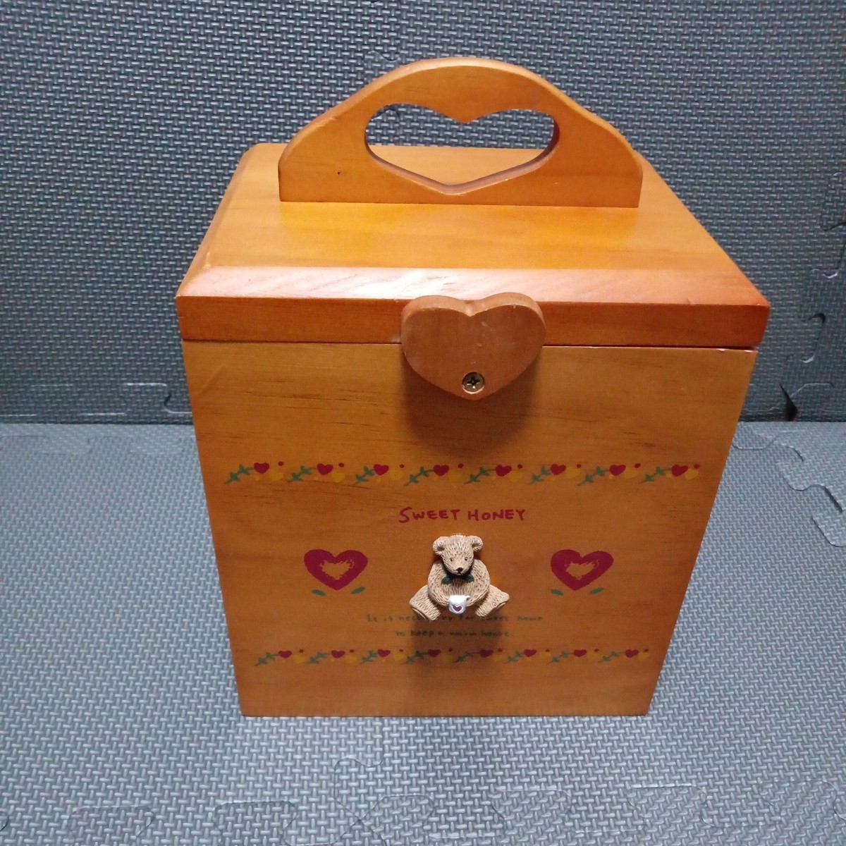- 木製「メイクボックス」コスメボックス 化粧箱 鏡付き 小物入れ 木箱 ミラー ベアー ベア