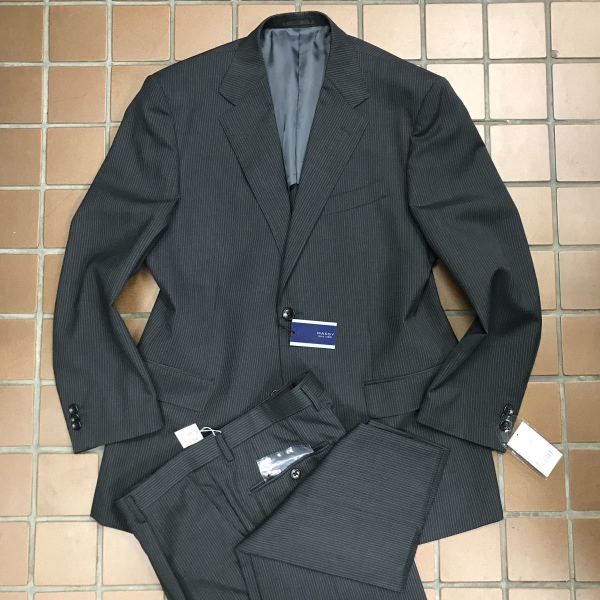 > 【新品】★メンズスーツ★紳士服 背広 ストライプスーツ セットアップ/未使用 激安/AB5 サイズL/グレイ/サイドベンツ 1タック