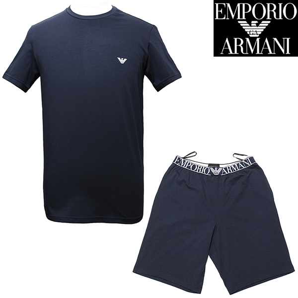> エンポリオ アルマーニ メンズ 半袖Tシャツ ハーフパンツ 上下セット ルームウェア アンダーウェア サイズM 111573 3R720 27435 新品