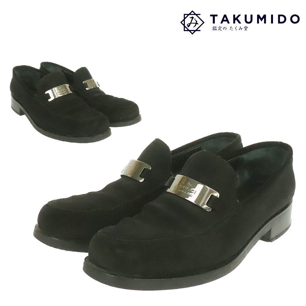 > グッチ GUCCI ローファー メンズ サイズ41 約28cm ブラック スエード 靴 シューズ 中古B 271815