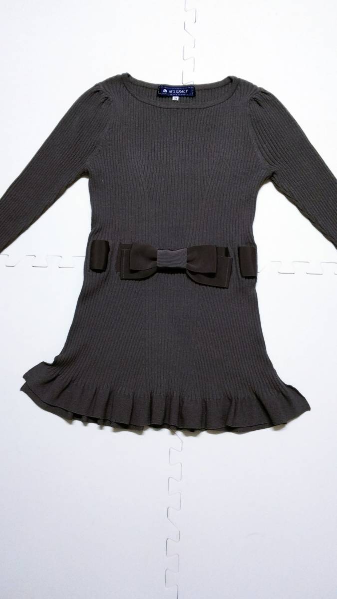 > レア 美品 エムズグレイシー 七分丈 ニット セーター 38 りぼん リボン レディース Ⅱ チュニック