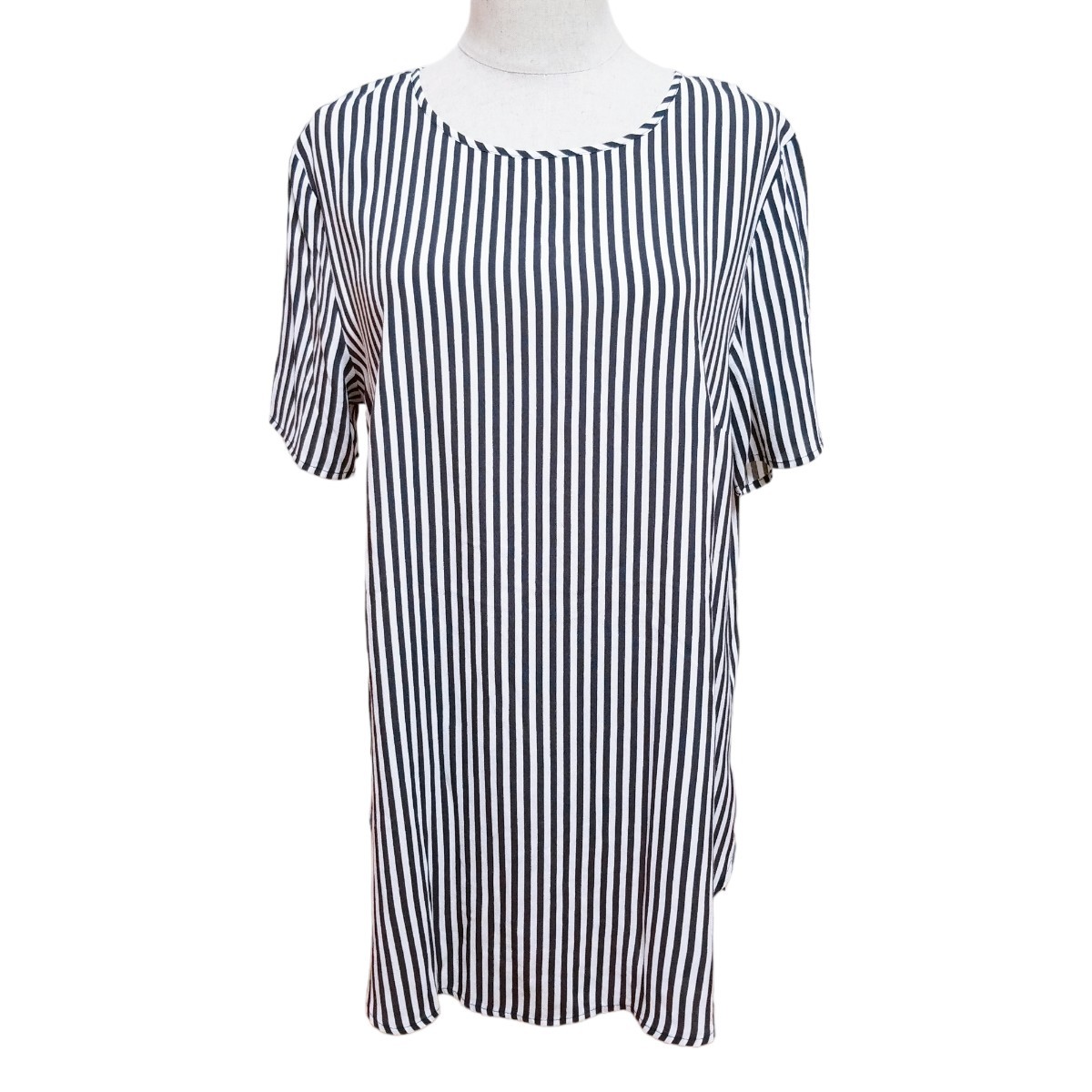 - Y240【美品】H&M エイチアンドエム ロングトップス ブラウス ラウンドネック 半袖 レディース 40 L 白黒 ホワイト×ブラック ストライプ