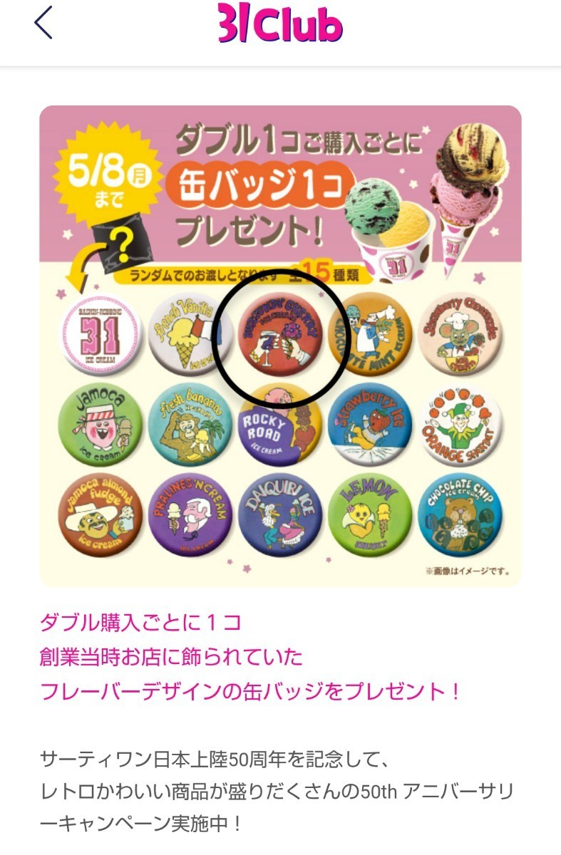 - 新品 31 サーティワン アイスクリーム 50周年 アニバーサリー バーガンディーチェリーアイスクリーム 缶バッジ 缶バッヂ 缶バッチ