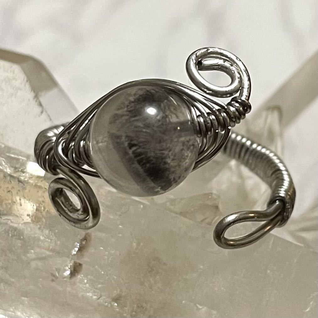 > YR60. 天然石ワイヤーリング オーラライト23 指輪 天然石リング ハンドメイドリング 水晶 フリーサイズ オープンリング ニッケルフリー