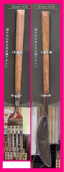 > 【送料無料:クチポール風 カトラリー 2本 木目調】★温かみのある フォーク & ステーキナイフ★おしゃれ ブラウン 可愛い ディナー セット
