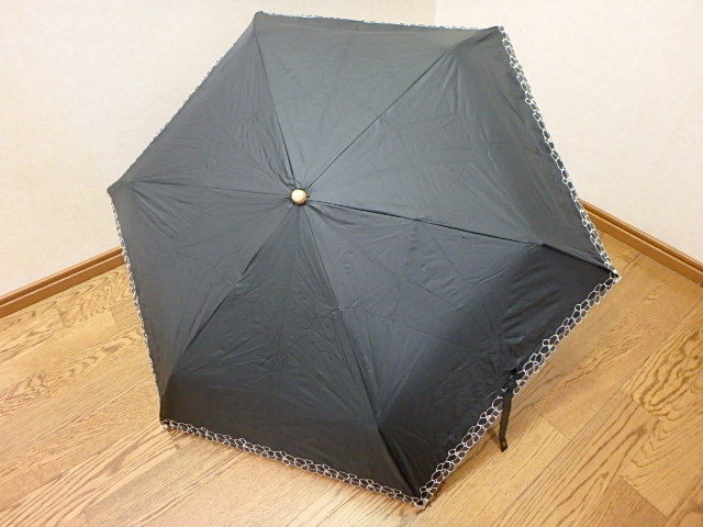 > 60s305k 折りたたみ傘 黒 花柄 兼用傘 UV 雨傘 HAMAGAKI YOSHI レディース 女性用 中古(北海道・沖縄・離島は発送不可)