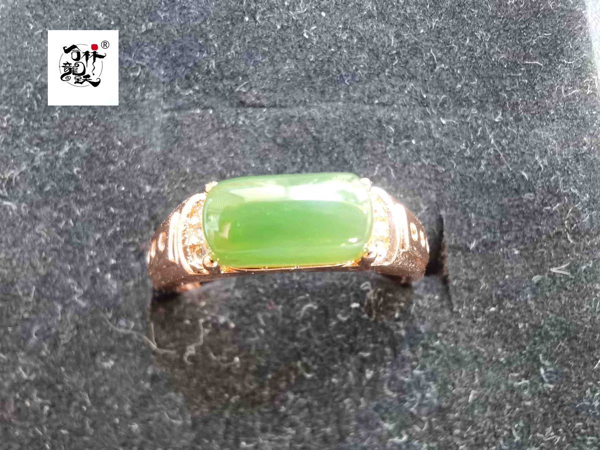 - 天然 美しい 和田玉 馬の鞍 碧玉 開口 指輪 リング
