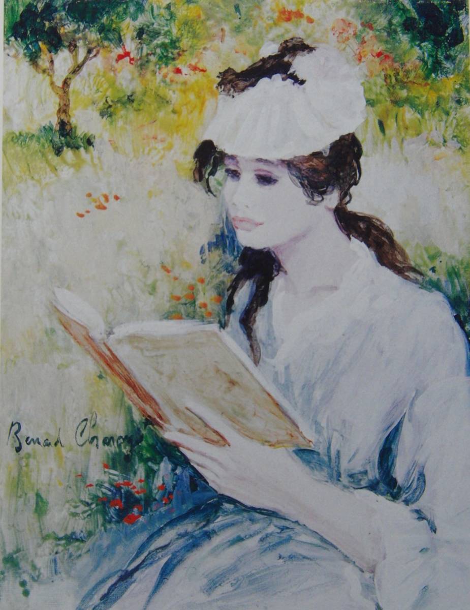 > ベルナール・シャロワ、「野原で読書」、希少画集・額装画、日本製・新品額縁にて額装致します、状態良好、送料無料