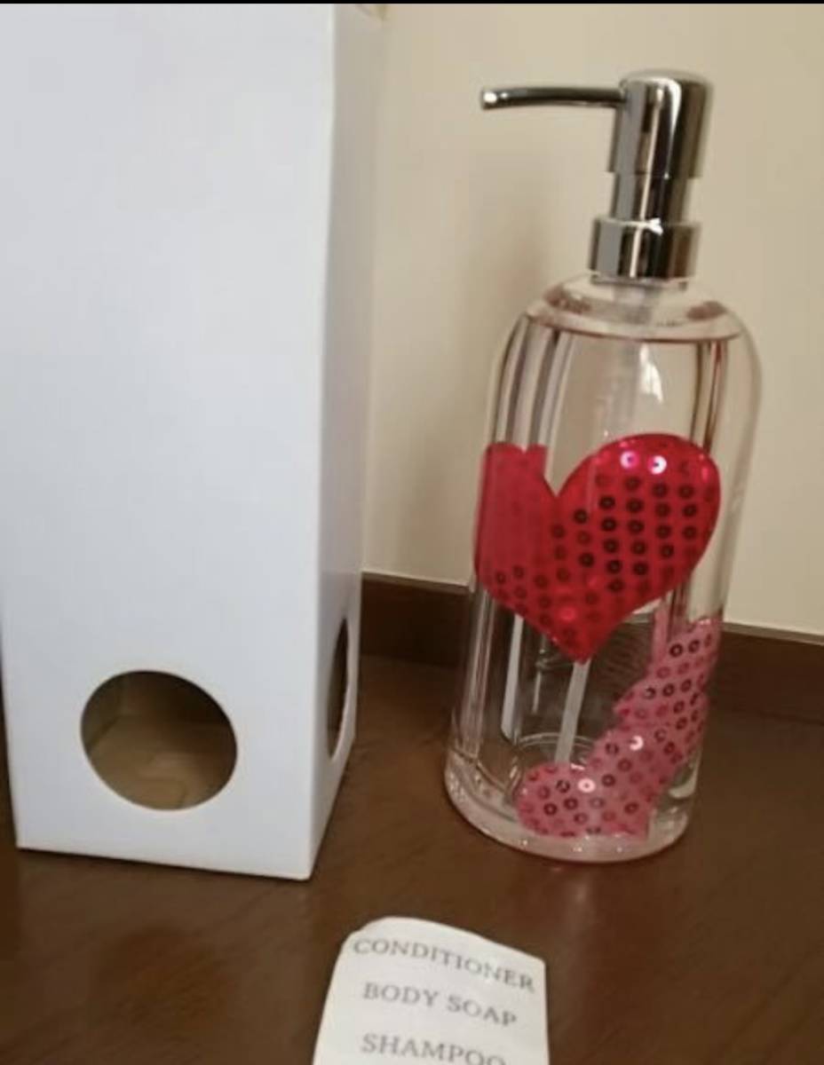- 新品 ソープディスペンサー 大容量 550ML クリアのアクリル モチーフを入れた大容量バスディスペンサー 定価4320円
