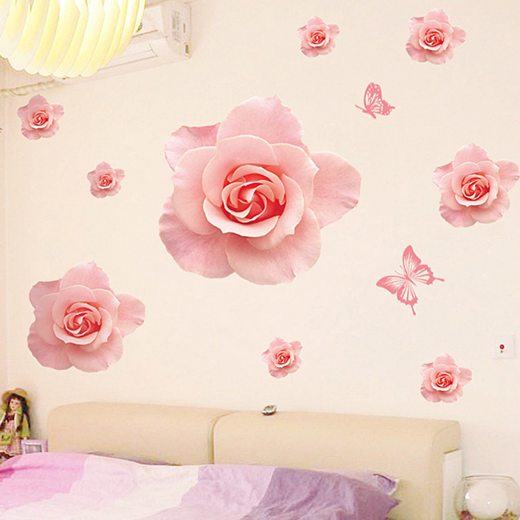 - ウォールステッカー YB182 ピンクバラ 花 ロマンス 癒す DIY 壁紙 インテリアシート 剥がせるシール 送料無料