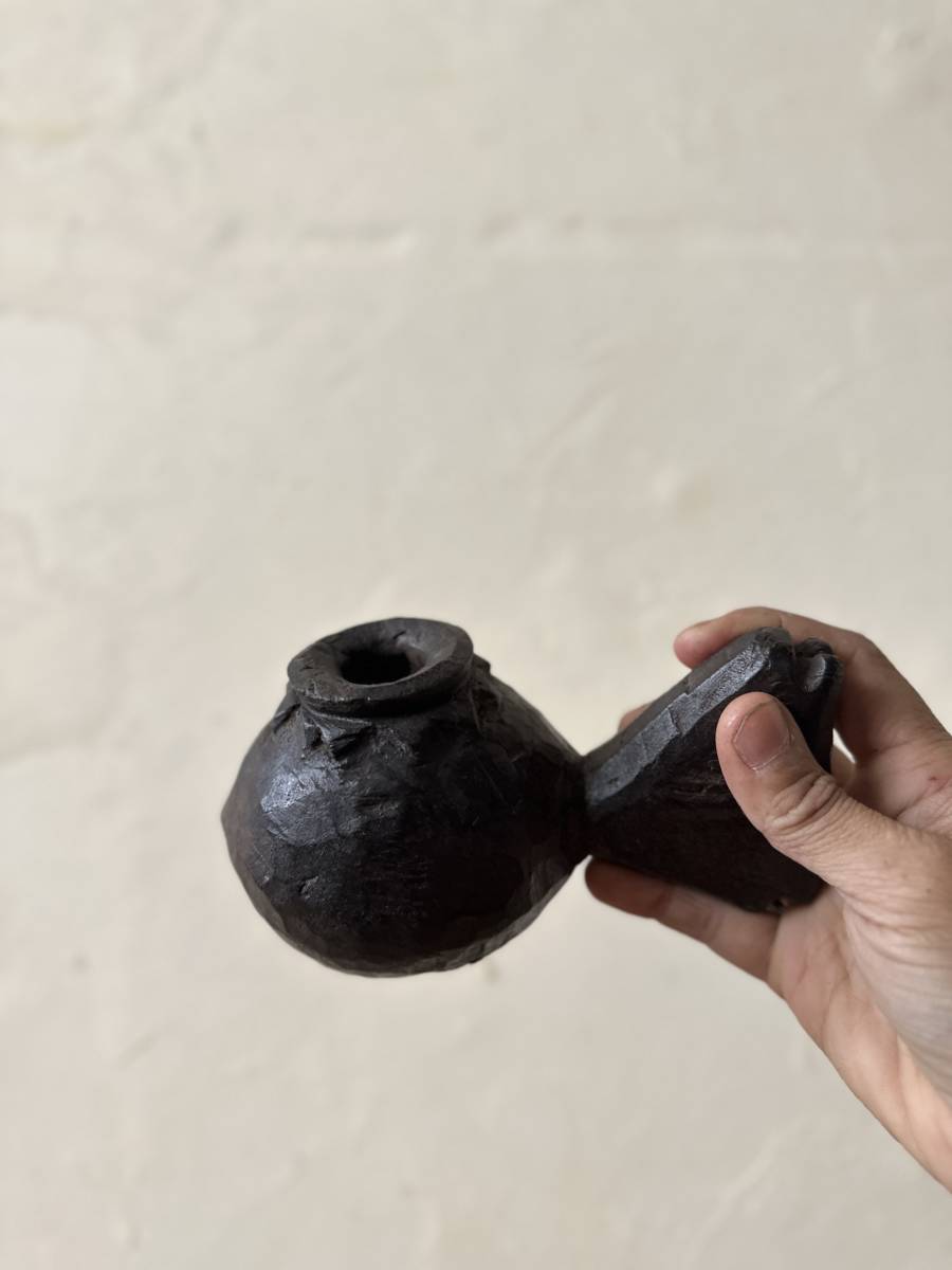- インド アンティーク 木彫り ワンウッド 手彫り 民芸 民藝 置物 アート オブジェ ポット 花器 器 インテリア ディスプレイ