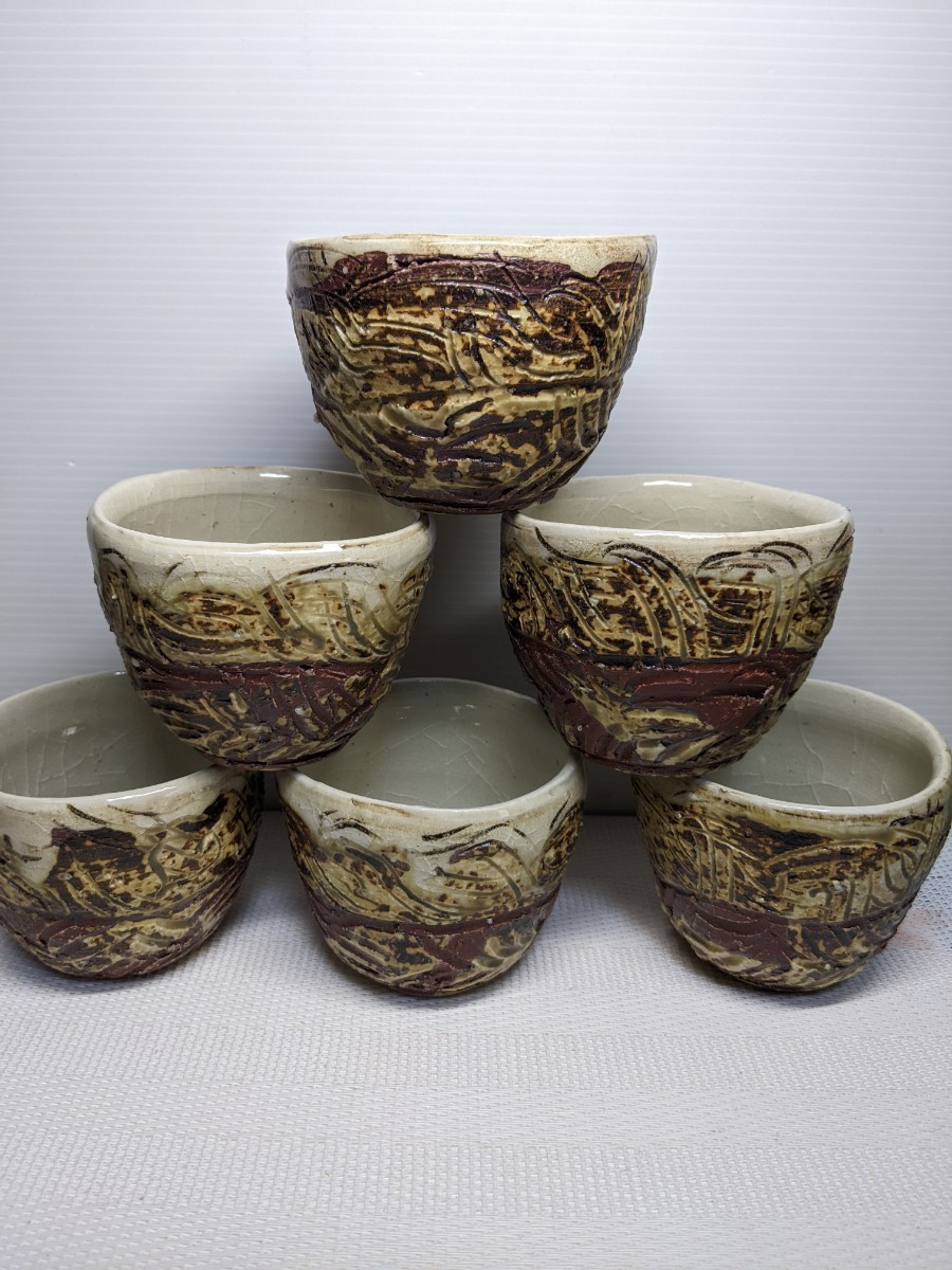 - 変わり湯呑み ひび入り模様 6客 新品箱無し 商品説明を必ずご覧下さい。