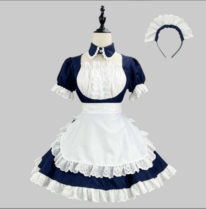 - 【L-3】ワンピース メイド 服 ロリータ 学園祭 ハロウィン お祭り イベント 紺色 コスプレ衣装
