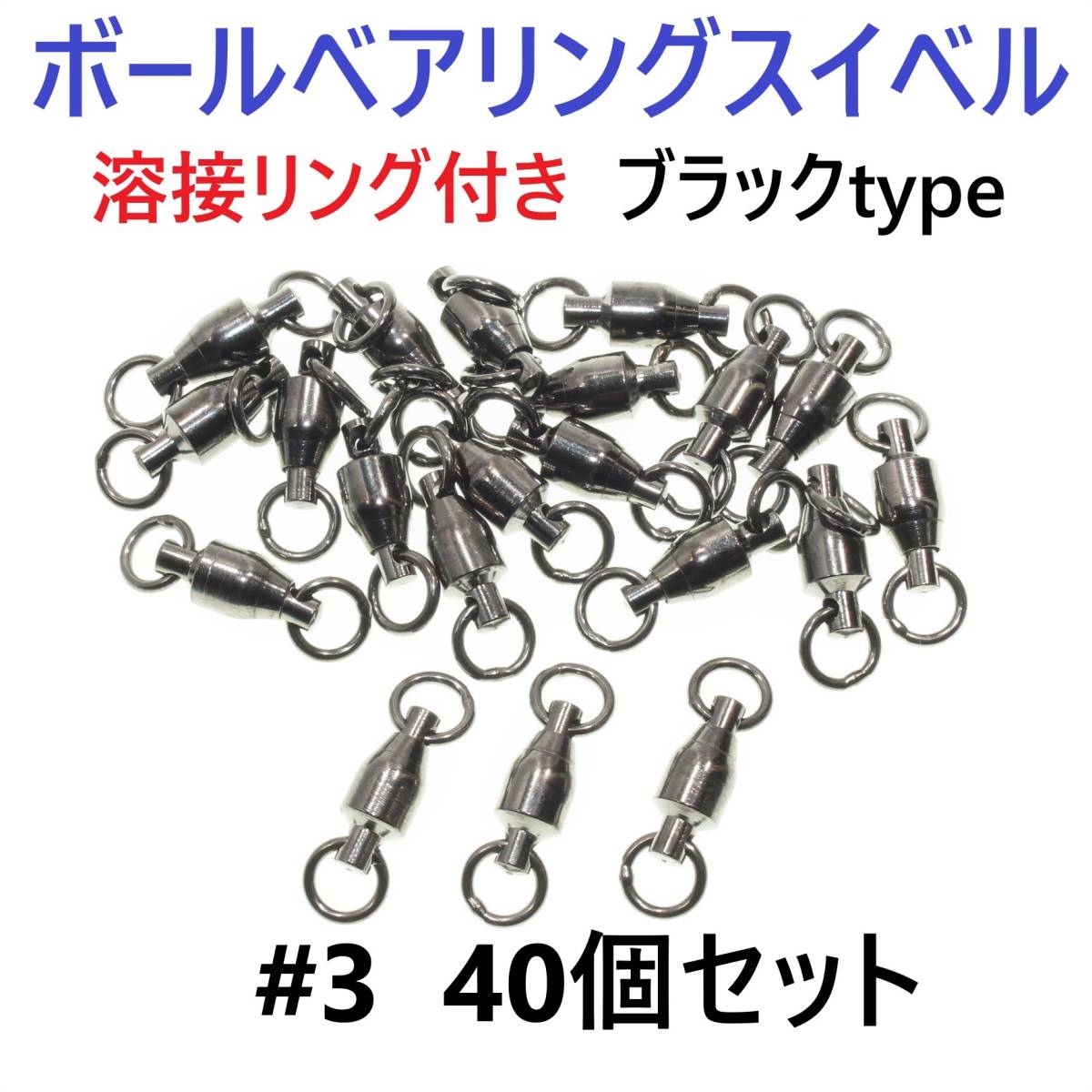 > 【送料180円】ボールベアリング スイベル #3 40個セット 溶接リング付き ブラックタイプ ジギング等に!