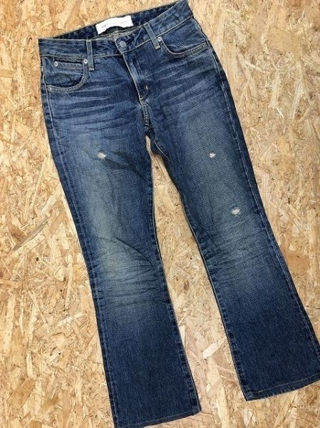 - 【USA製】 Paper Denim & Cloth 5387 デニム フレアパンツ ブーツカット ジーンズ クラッシュ加工 サイズ24 ブルー 薄青 レディース