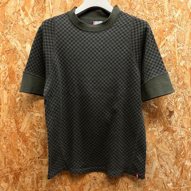 > リーバイス Levi's カットソー Tシャツ 半袖 モックネック チェック柄 ポリエステル×綿 M ネイビー×カーキ レディース(キッズ?)
