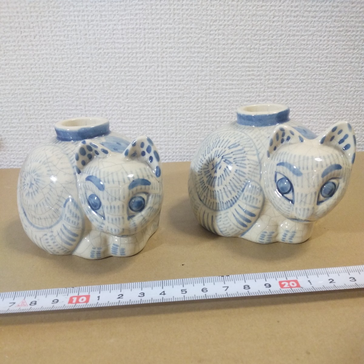 - ナンシーロペス NANCY LOPEZ ネコ 猫 陶器 置物 1978年製 2点セット 高さ約7㎝ 未チェック 詳細不明 ジャンク扱い