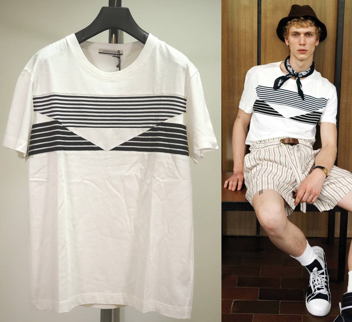 > 未使用品 ANDREA POMPILIO アンドレアポンピリオ 17SSボーダー切り替えTシャツ48白 Italy製