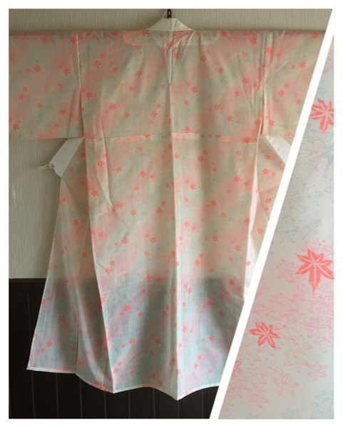 - 【毛斯綸の長襦袢】着丈131.5cm 薄いピンクの紅葉柄