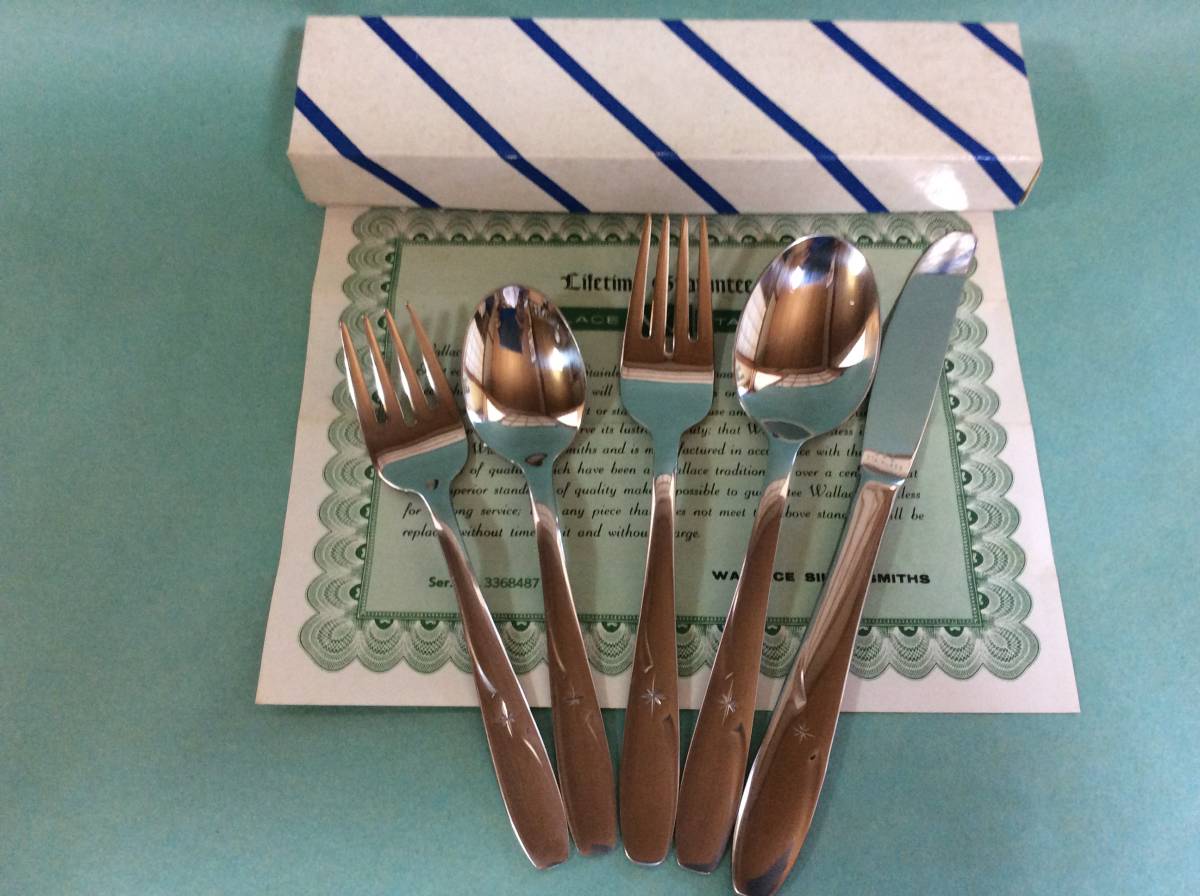> 【Mid-flatware/Wallace-Stainles/North Star/未使用/箱入④】ウォレス-ステンレス/ノーススター/カトラリー5点セット/アトミックエイジ