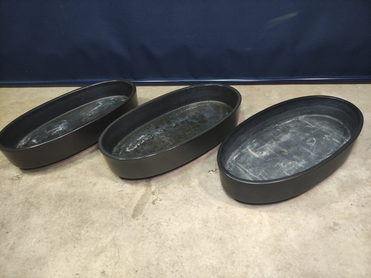 - r34 盆栽鉢 3点 まとめて 楕円 丸盆 園芸 花器 花生 アンティーク 昭和レトロ