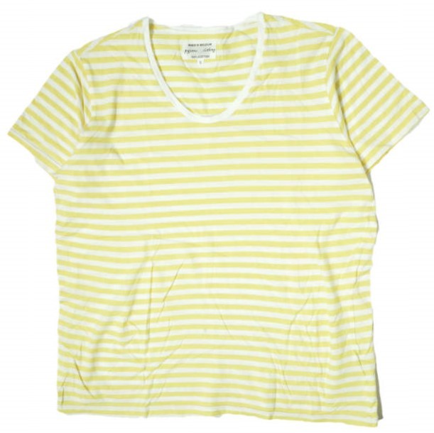 - pyjama clothing ピジャマクロージング ベルギー製 Border ?U-Neck Tee ボーダーUネックTシャツ S イエロー/ホワイト カットソー g9601
