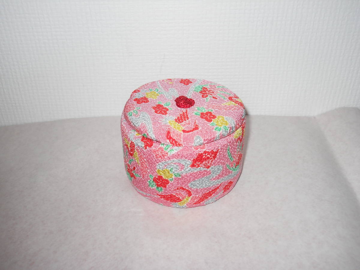 - 小箱 小物入れ 和風 ピンク 植物柄 おそらくちりめん