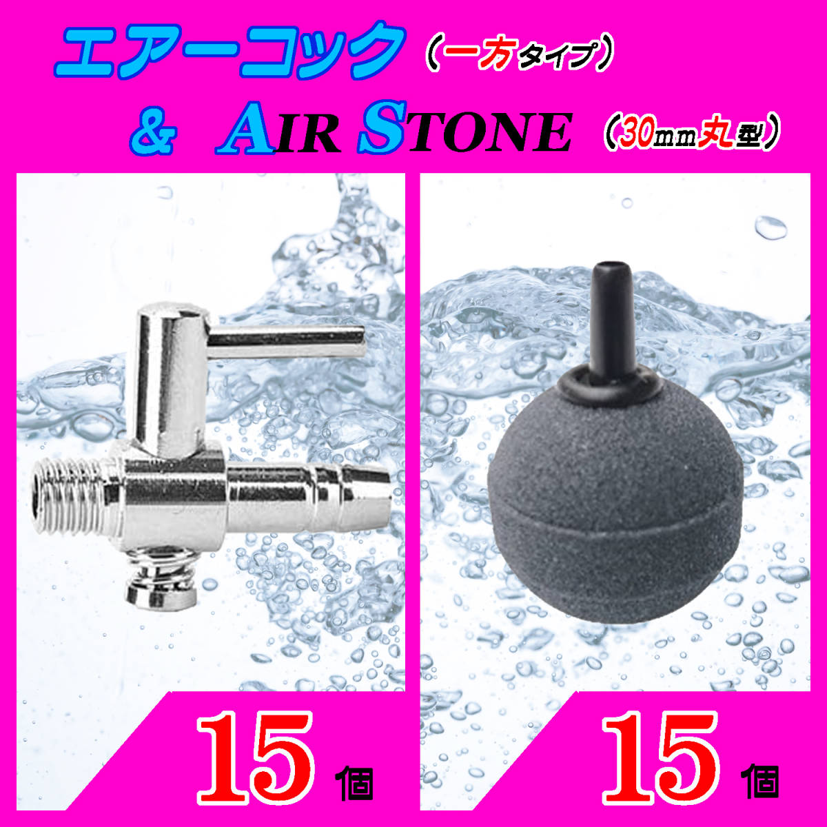 - ☆エアーコック&エアーストーン☆一方コックと30mm玉のセット!⑮ エアストーン シュリンプ メダカ アクアリウム