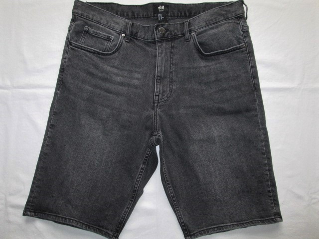 > ★古着 1回使用美品 H&M エイチアンドエム SLIMFIT デニムショートパンツ W33 ブラックデニム ウォッシュ加工 ダメージ加工 ハーフパンツ★