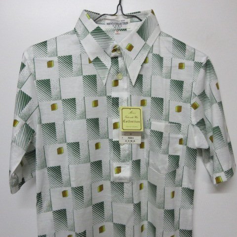 - 昭和レトロ 半袖 柄シャツ S 緑 未使用 オールド JAPAN古着 sy3531
