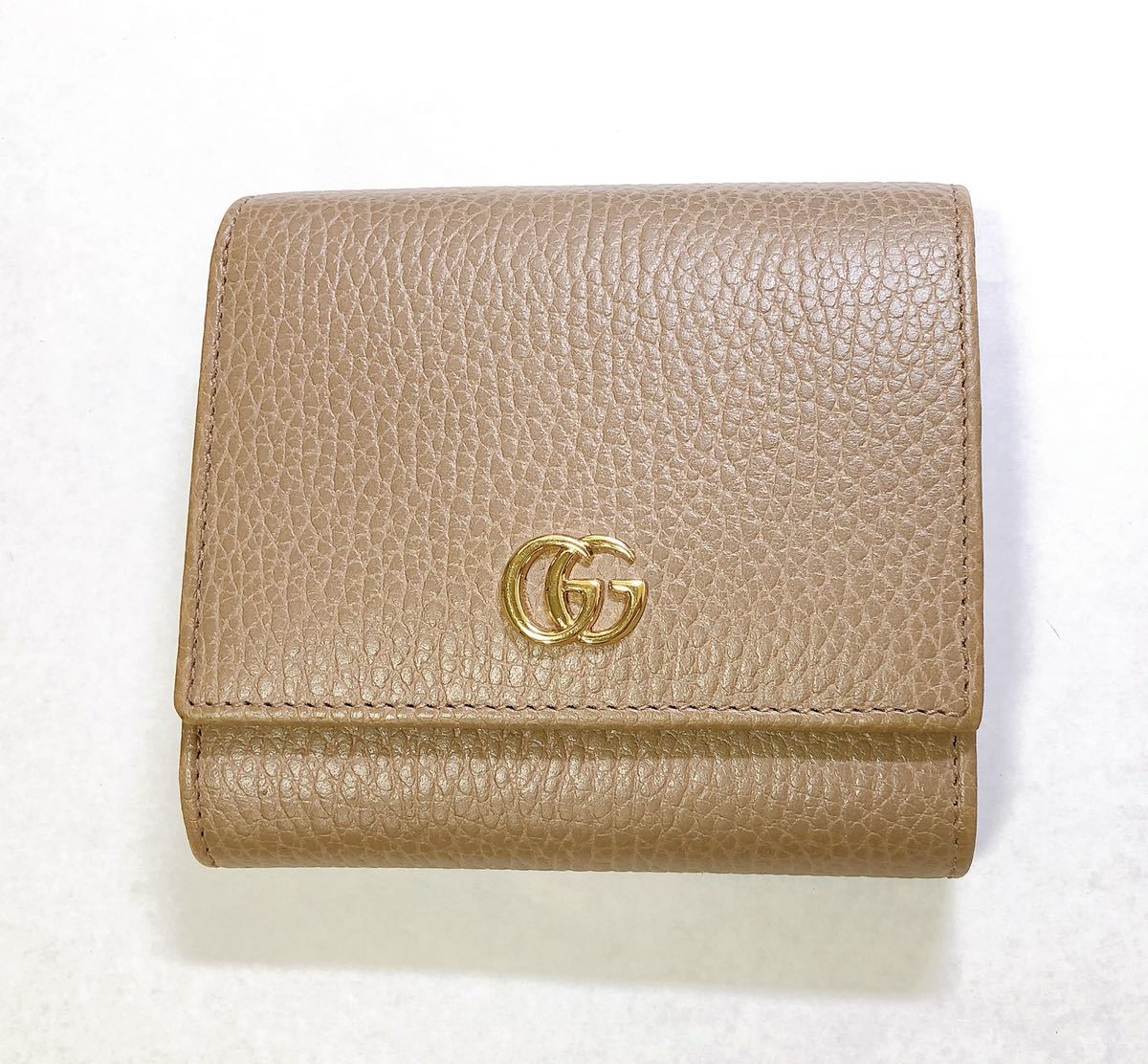 - 【質屋 尾張屋商店 東京】 ☆美品☆ グッチ 2折財布 GGマーモント 598587 コンパクト ベージュ