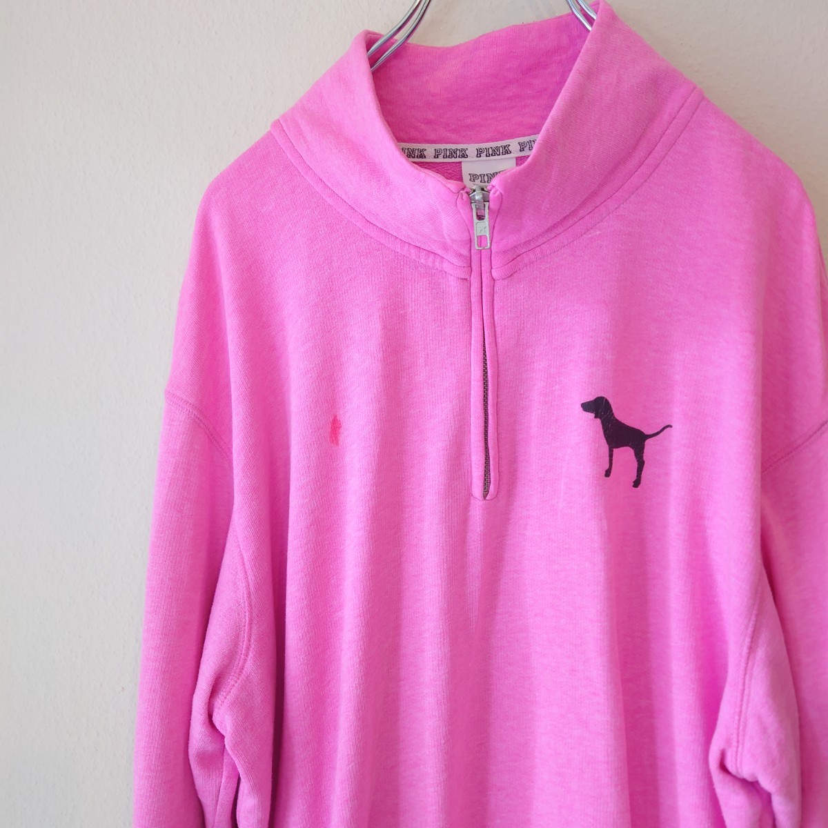 - PINK ハーフジップ スウェット 犬プリント アニマルプリント /Y1874