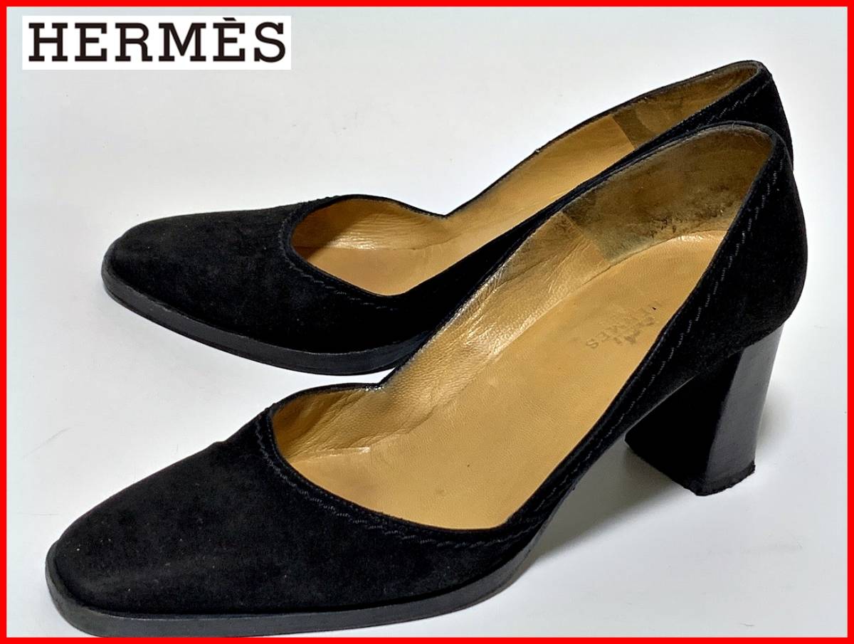 - 即決 HERMES エルメス 37≒24cm パンプス スエード 黒 ブラック レディース jtu
