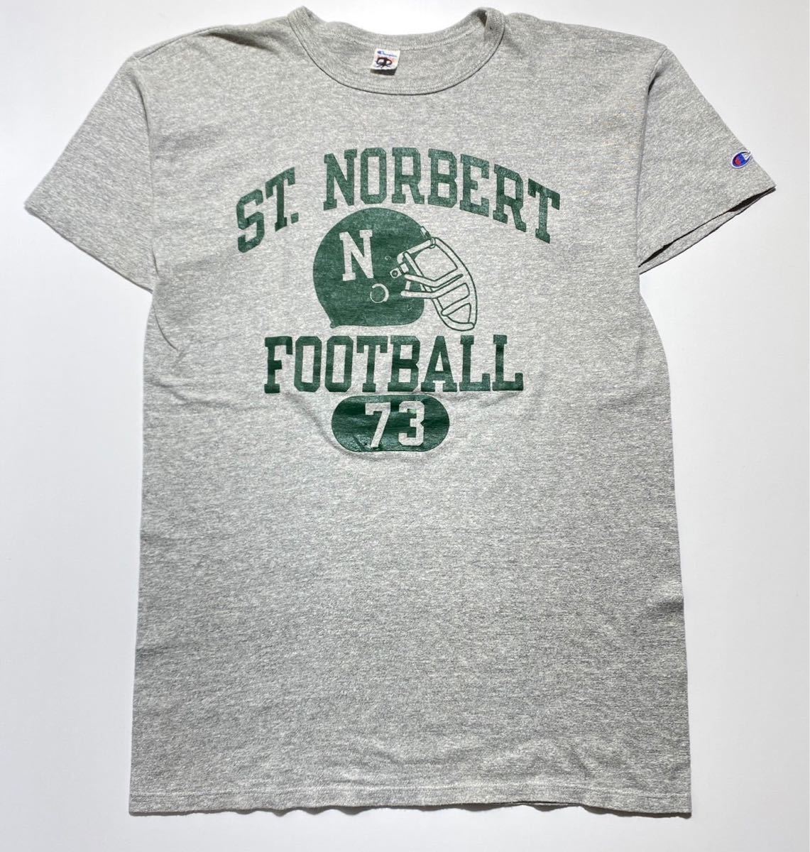 > 【XL】80s Vintage Champion St.Norbert Football Print Tee 80年代 ヴィンテージ チャンピオン セントノアバート大学 Tシャツ USA製 G2086