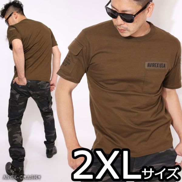 - AVIREX アビレックス ファティーグ 半袖 Tシャツ オリーブ【2XLサイズ 】6113328 クルーネック ポケット ミリタリー