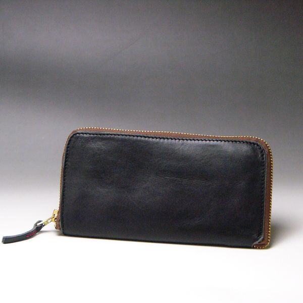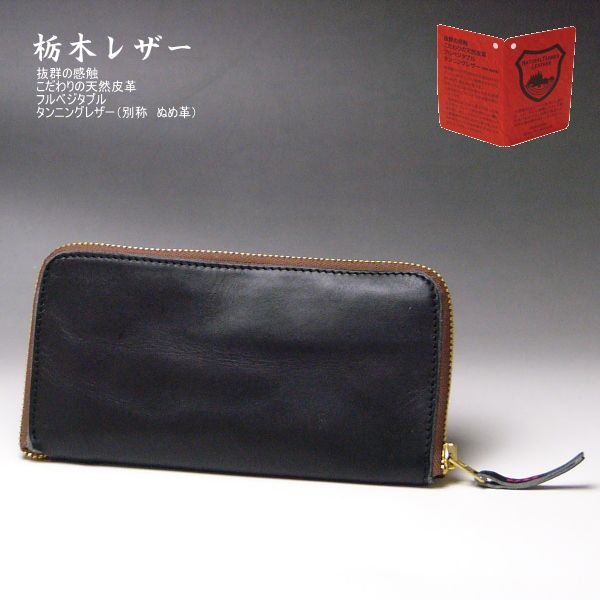 - 長財布 メンズ 本革 栃木レザー ラウンドファスナー 09 ブラック ヌメ革 新品 レザーブランド栃木レザー社製牛革使用