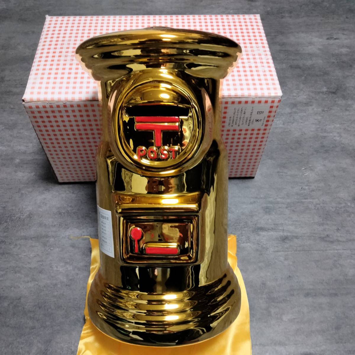 - 即決!希少!新品未使用品!★$レア昭和レトロ!★郵便ポスト 金の【大型サイズ】貯金箱ゴールド高さ約30cm 直径約17cm★