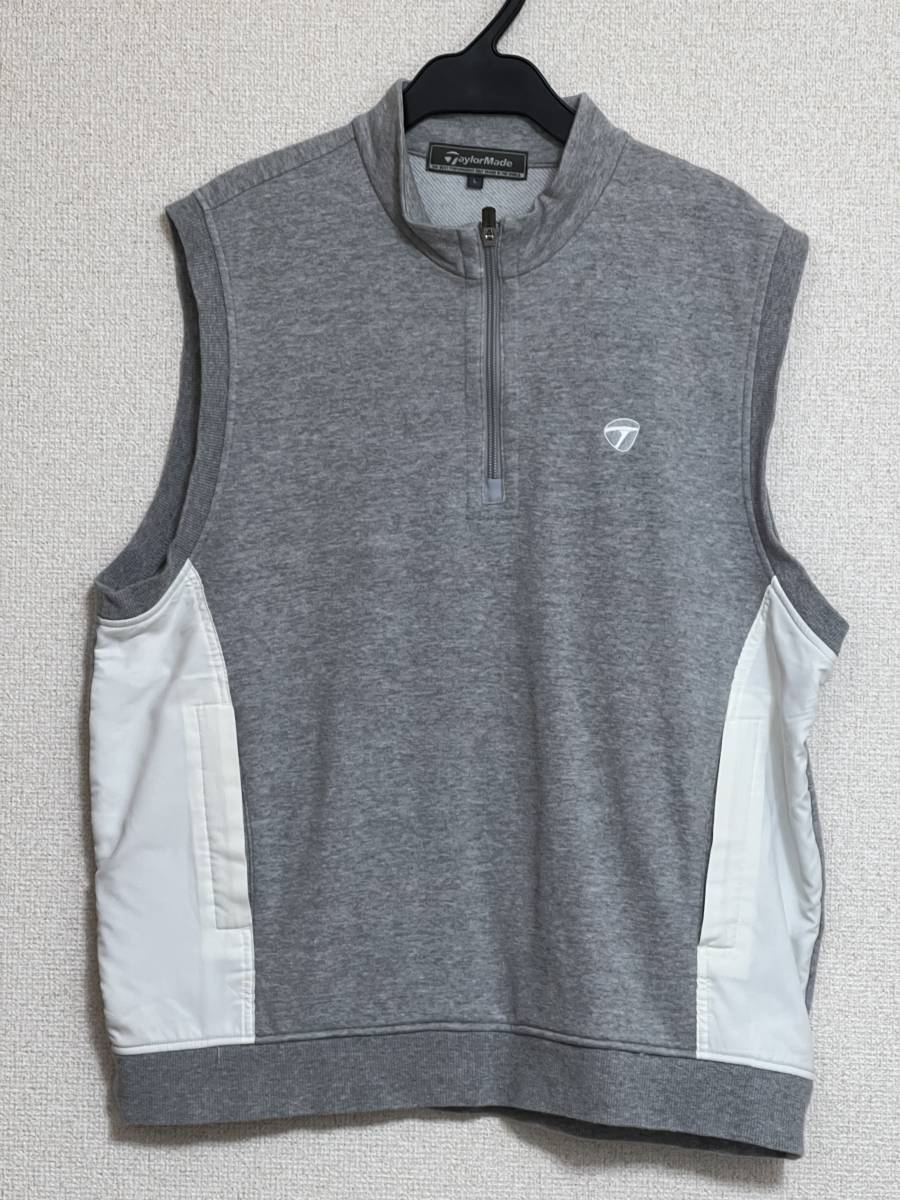 > ■最終価格 美品 希少 最終 TaylorMade テイラーメイド ジップアップベスト チョッキ グレー 丸首 L 胸ロゴ ゴルフ スポーツ レジャー