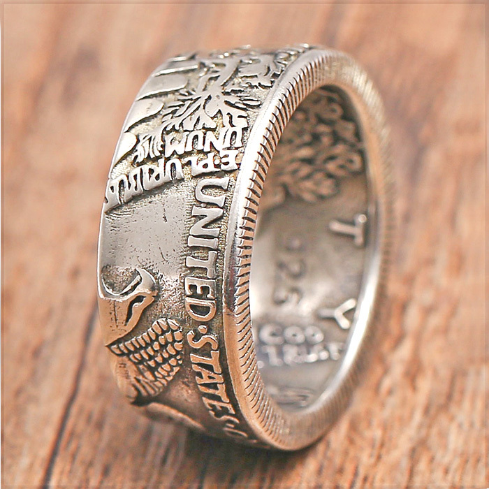 - [RING] WALKING LIBERTY HALF DOLLAR アメリカ 1921年 ウォーキングリバティ ハーフダラー銀貨 デザイン 8.5mm リング 16号 【送料無料】