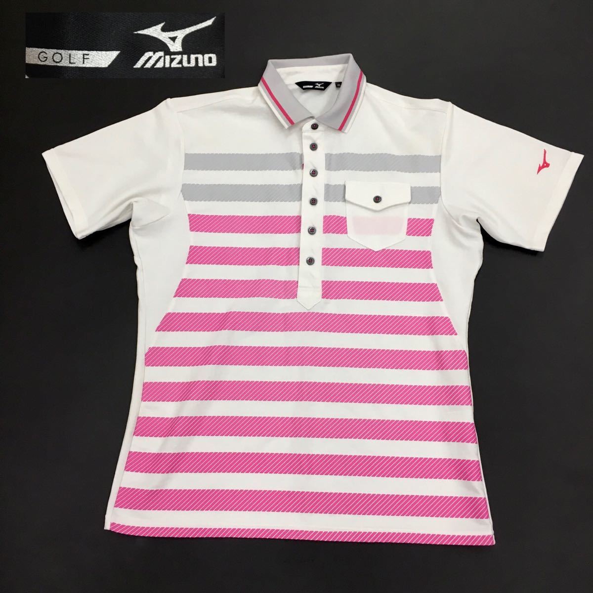 - MIZUNO GOLF ミズノ ゴルフウェア スポーツ 半袖ポロシャツ ボーダー 刺繍ロゴ ワンポイント メンズ サイズXL