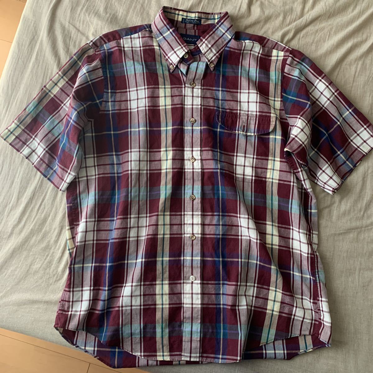 - 90s【Gant】ガンド ポリコットン マドラスチェック 半袖シャツ 香港製 Foxhunt Plaid チェック柄 ボタンダウン B.D shirt