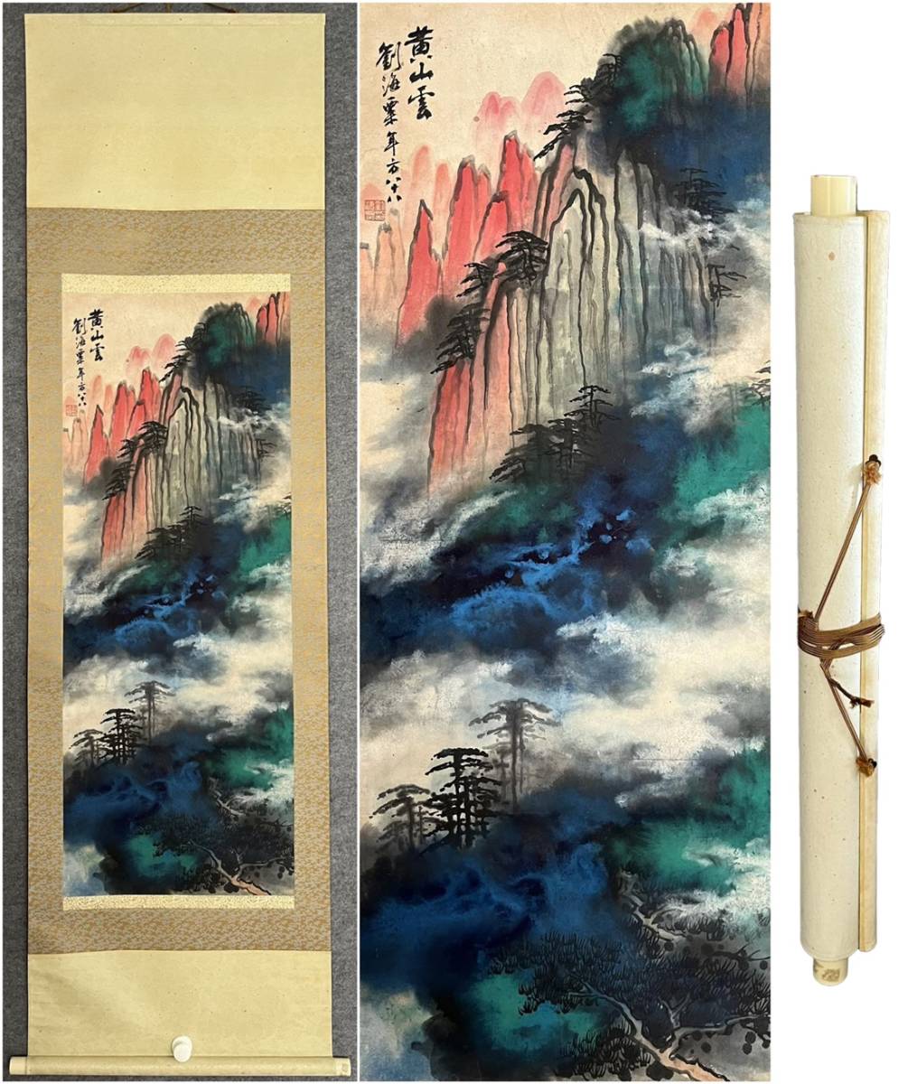 - 古美術 掛け軸 中国・近現代 劉海粟書 「撥彩黄山雲山水図」 紙本 立軸 書道 巻き物 真筆逸品 肉筆保証 唐物 古画 LT-07234