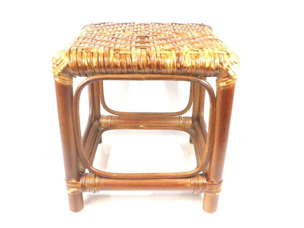 - 籐製スツール ミニ座椅子 籐家具 和モダン 天然素材 2010年代 幅奥行き23cm高さ24cm 年季が入った焦茶色で艶のある味わいのスツール TCU507