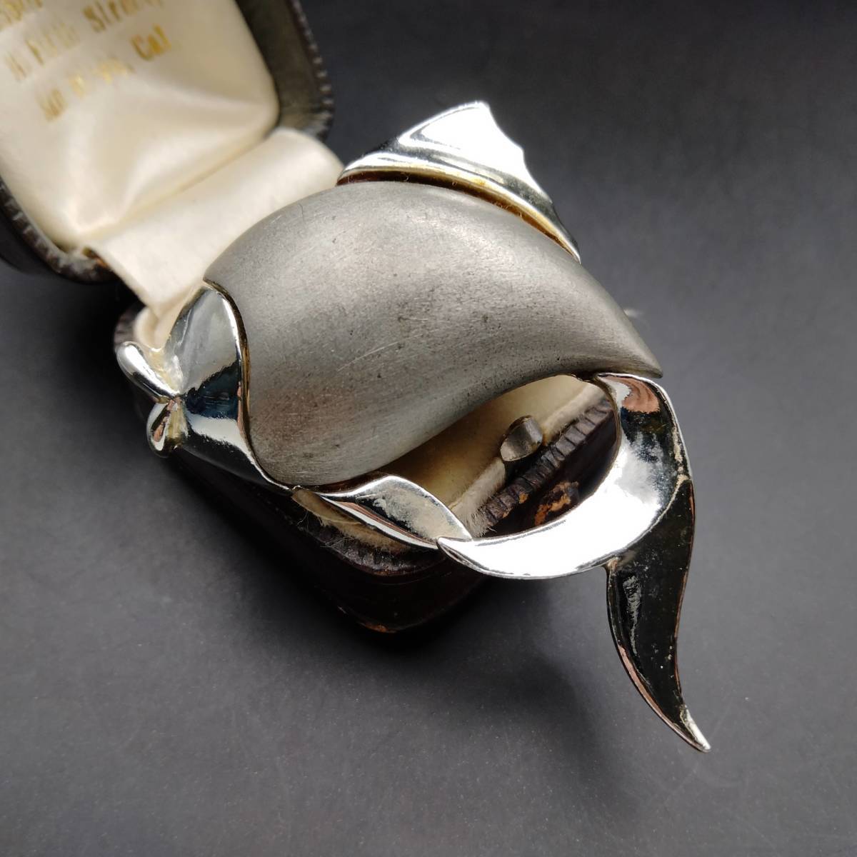 - J.J. 魚 モチーフ 立体 シルバートーン ビンテージ ブローチ 昭和レトロ コスチューム ジュエリー 輸入 7S-X