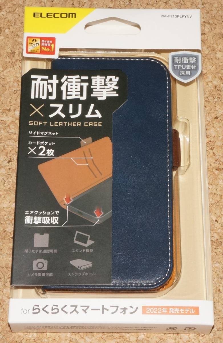 > ★新品★ELECOM らくらくスマートフォン F-52B レザーケース 耐衝撃×スリム ネイビー