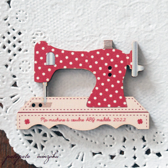 - ミシン 赤ドット フランス 製 木製ボタン アトリエ ボヌール ドゥ ジュール 手芸 ボタン 雑貨 蝶 小物